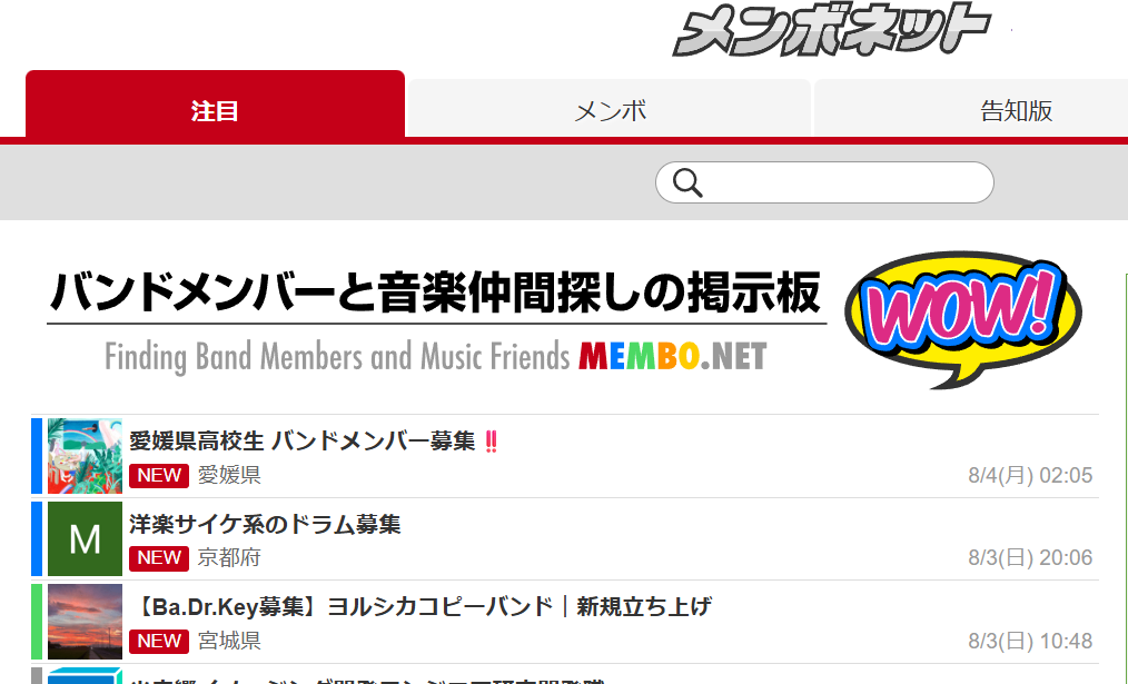 メンボネットは、個人でもグループでも法人でも無料で自由に利用できるバンドメンバー募集・関連情報の交換サイトです。