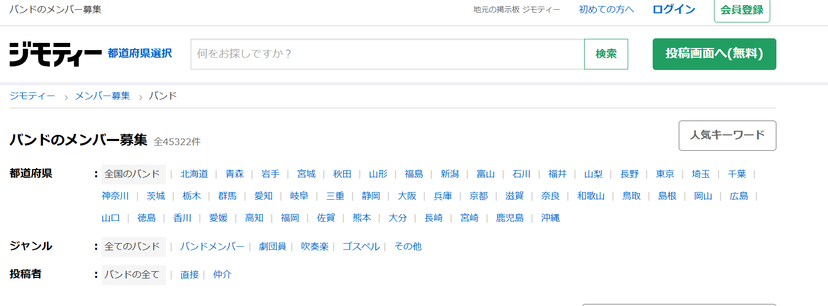 利用者の多いバンドメンバー募集掲示板を見ていただいても分かるように、数多くの人が、バンドメンバーを募集しています。