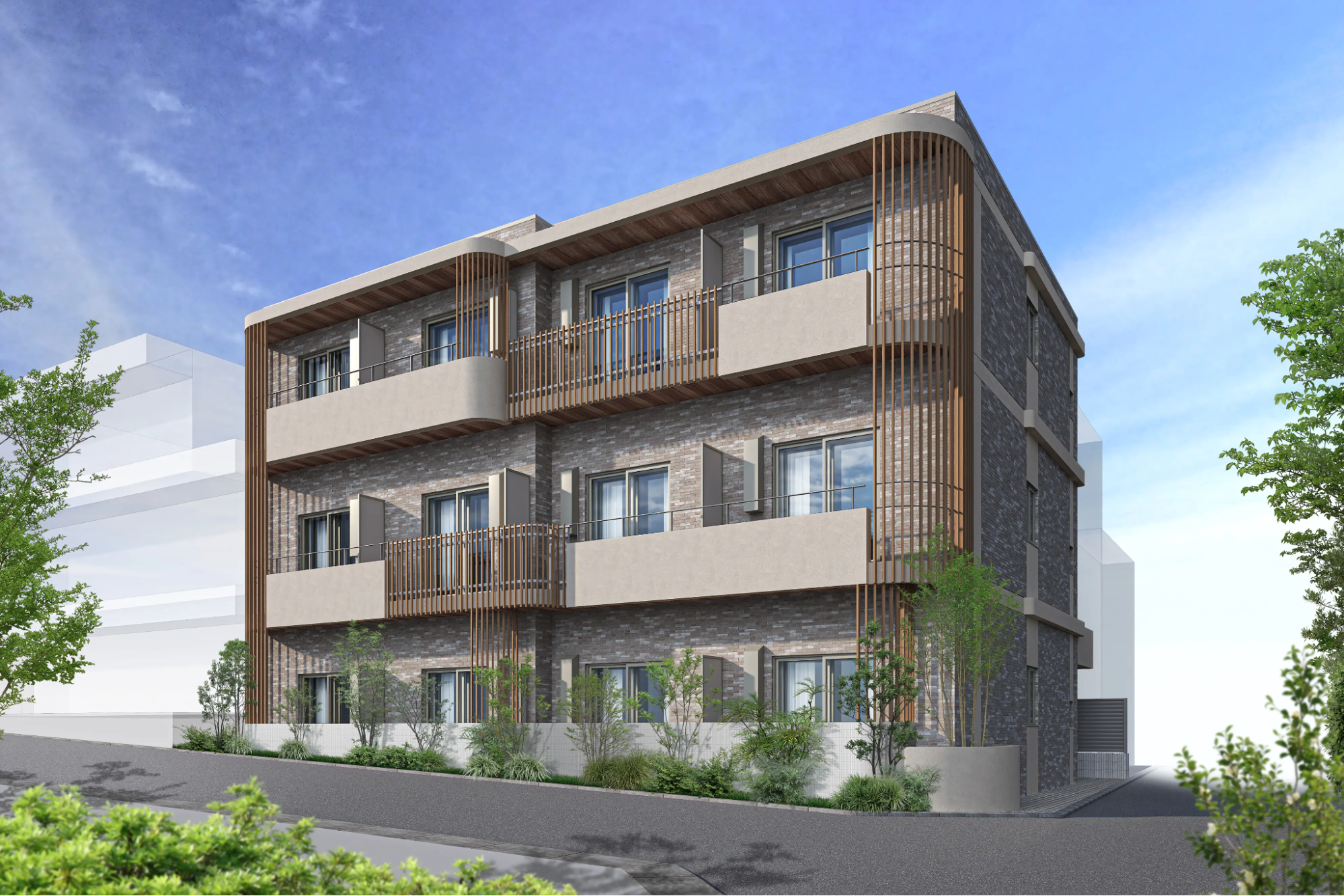 「サウンドプルーフ プロ駒沢大学」同様三重防音構造・メガフレーム防振防音構造の特許工法を採用しており、周辺環境との共存を図った木目と落ち着きのある色彩が調和する外観デザインも魅力的な物件となっています。